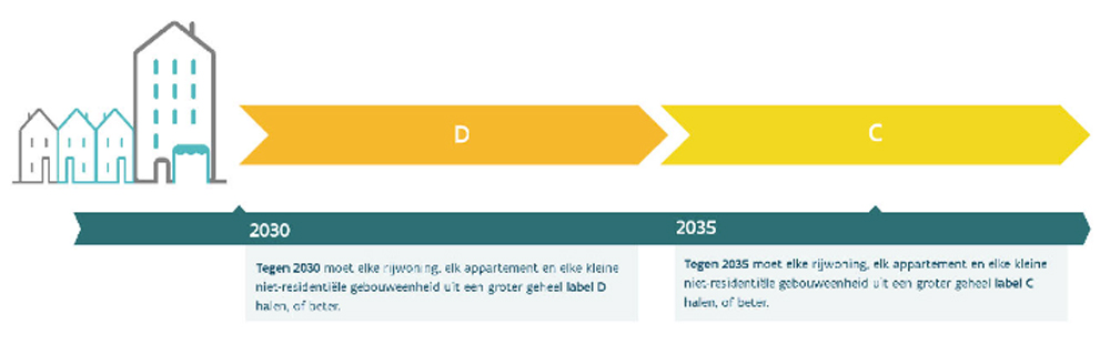 Het Vlaams Energie- en Klimaatagentschap (VEKA) laat ons hierover verder weten: ‘Het opnemen van het gebouwlabel-pad in het VEKP moet gezien worden als een duidelijke signaalfunctie richting VME’s en syndici. Ook zittende eigenaars en verhuurders zullen onderhevig worden aan verplichtingen en daarbij zal ook de collectieve verantwoordelijkheid moeten aangesproken worden: alle mede-eigenaars zullen samen verantwoordelijk zijn om het gebouw klaar te krijgen tegen 2050, ook al hebben er sommige eigenaars of verhuurders al een A of B label.’