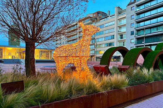Vooral in de handelskernen van alle deelgemeentes heeft het gemeentebestuur dit jaar een serieuze inspanning geleverd om een feeërieke beleving te creëren. De belangrijkste winkelstraten, Lippenslaan, Kustlaan, Dumortierlaan en Graaf d’Ursellaan, kregen extra veel kerstverlichting, maar overal in de gemeente zal je terecht kunnen voor een gezellige sessie eindejaarshopping, en dat ook op zondag. Je ontdekt er knuffelbare beren, stoere wolven, sprankelende sterrenbogen en prachtig verlichte bomen.