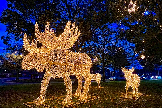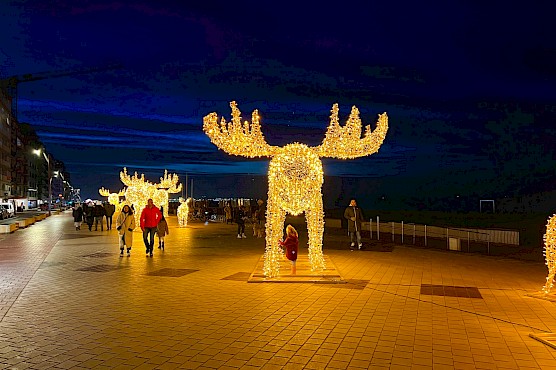 Een absoluut hoogtepunt is de indrukwekkende elandenoptocht. Langs de Zeedijk, tussen Lichttorenplein en Albertplein, staan 30 lichtsculpturen, tot wel 6 meter hoog. Een ander hoogtepunt is het Maurice Lippensplein, dat baadt in het licht tussen Keith Haringplein en de Sint-Margaretakerk. Zie je de bosdieren van het Hoge Noorden, verscholen tussen de feestelijk verlichte bomen?
