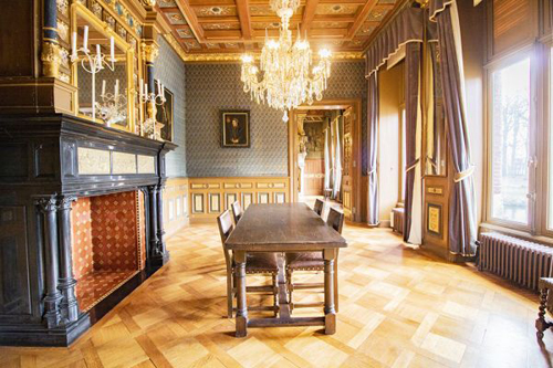 Le château développe une surface habitable d’environ 1.500 m², complétée par près de 1.000 m² de dépendances. À l’intérieur, chaque pièce reflète le caractère du lieu, avec de nombreux éléments d’origine préservés.