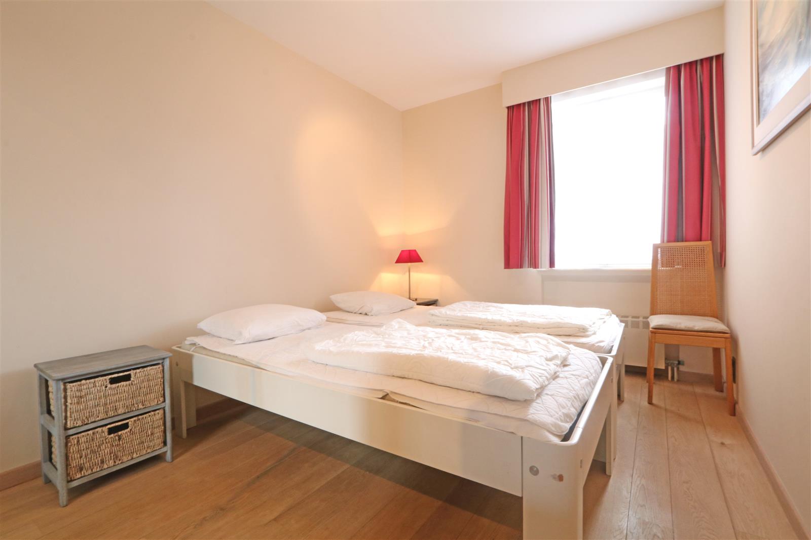 Appartement avec deux chambres à coucher et une vue mer magnifique, situé au coeur du Zoute. Emplacement dans l'immeuble.